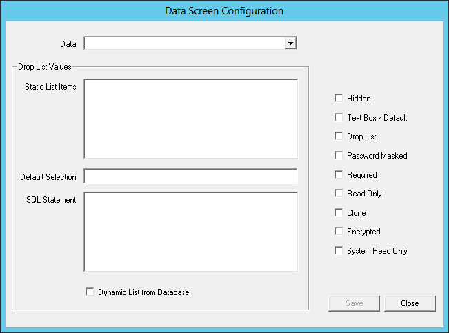Most often a User field cannot be edited due to its Read Only field type. To make a User field editable the field type must be changed from Read Only to Text Box / Default in the Data Screen Configuration window.