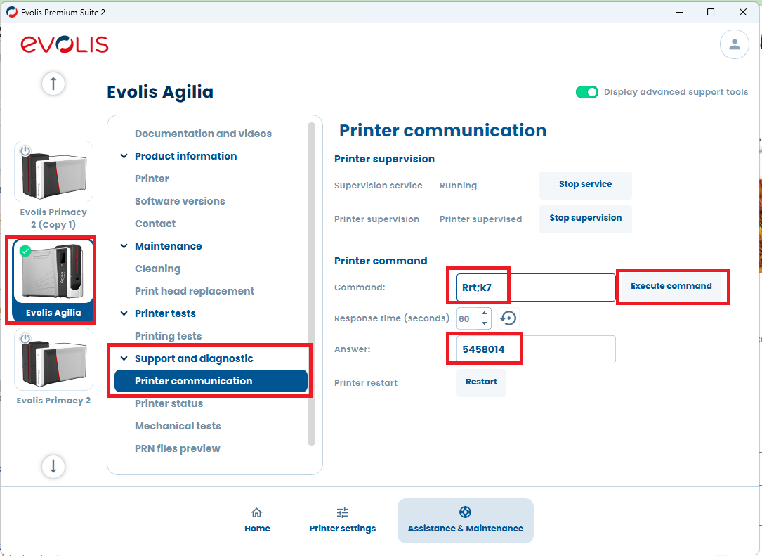 To retrieve the ribbon chip information through the Ribbon Detection Kit board, run the following command: